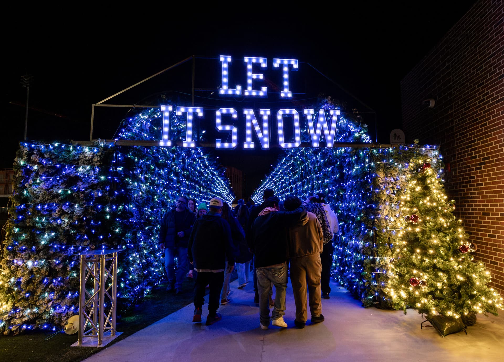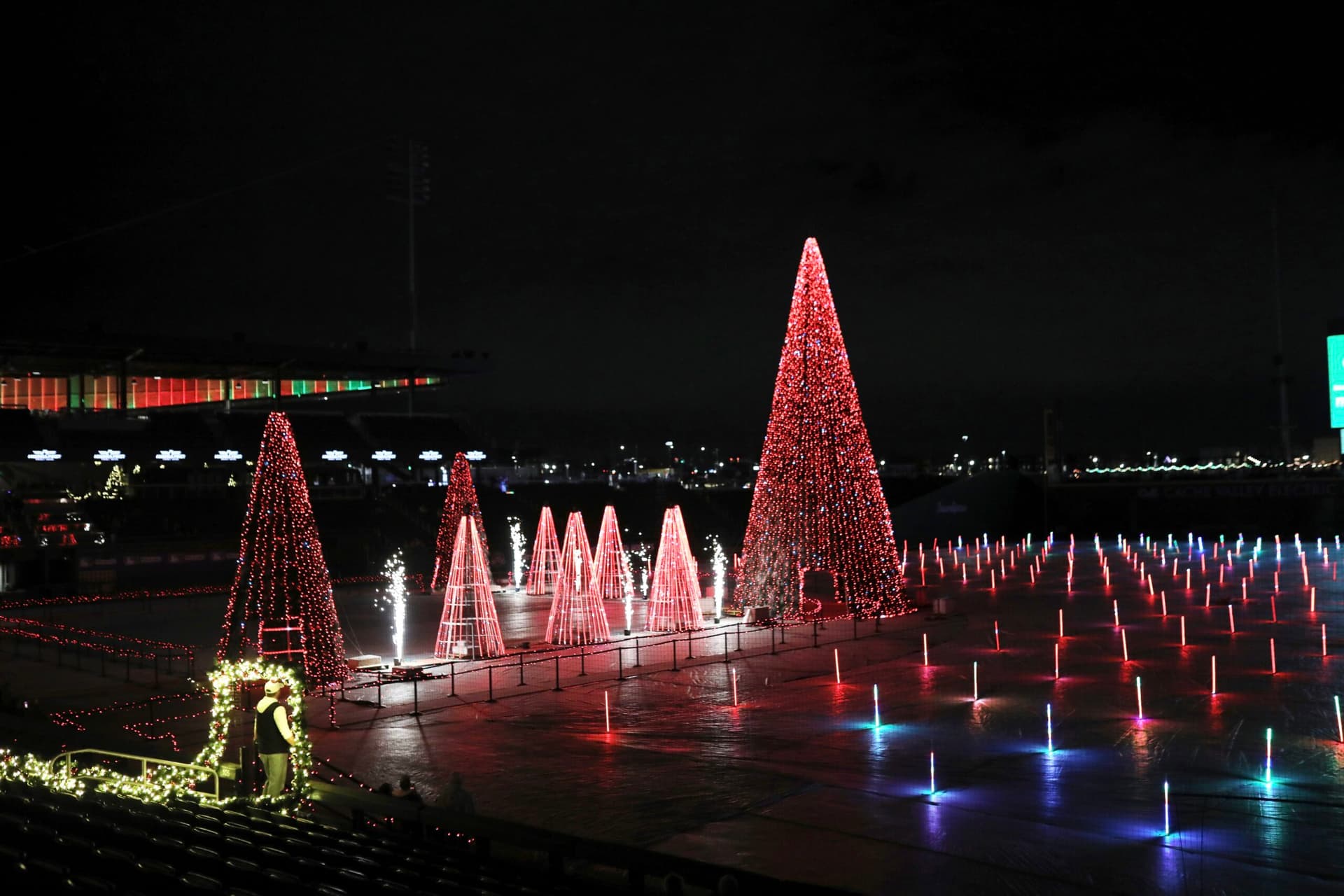 - Walk among glowing Christmas trees and synchronized lights featuring a 60-foot Christmas tree on the field