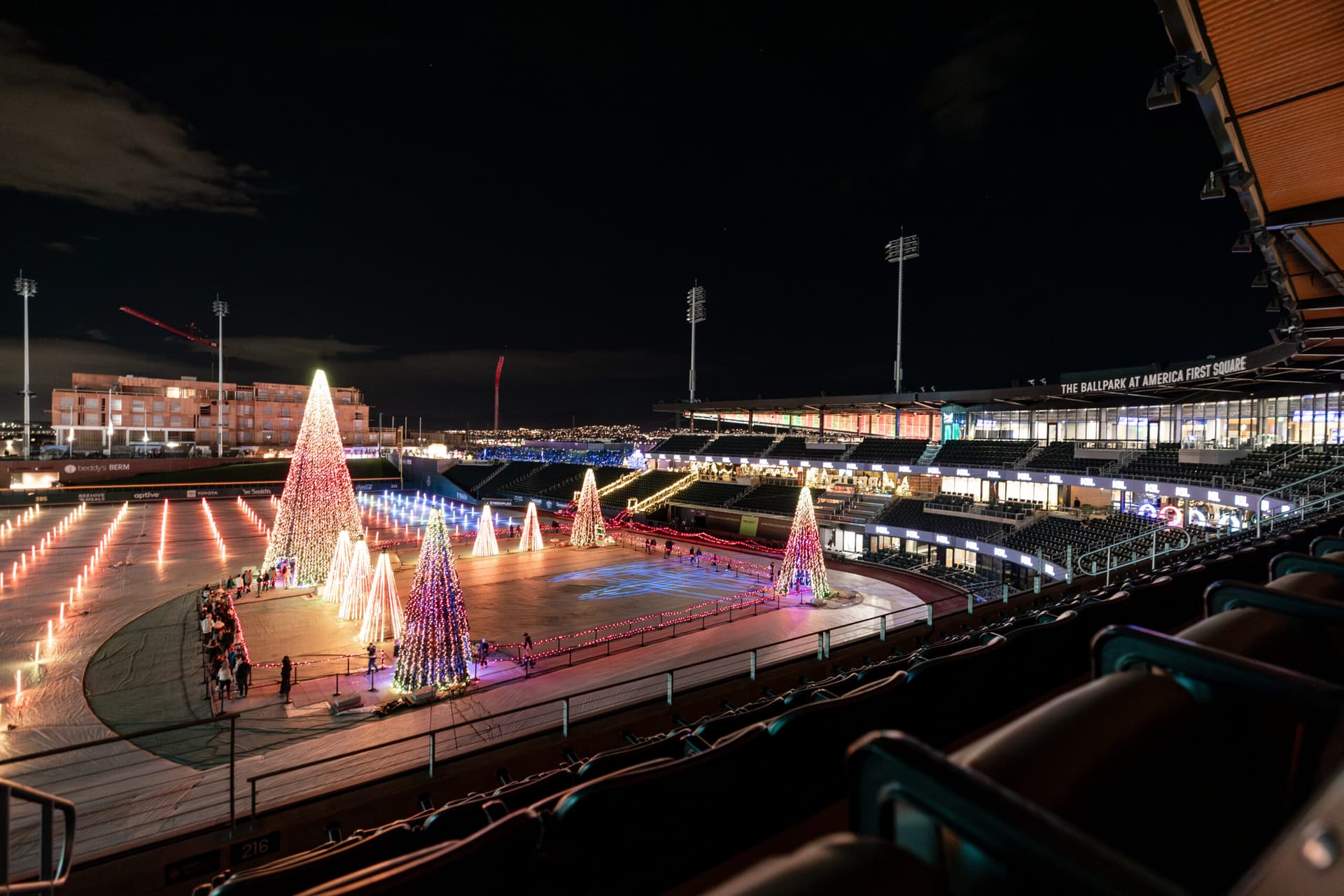 Discover South Jordan’s newest holiday tradition at The Ballpark at America First Square. Holiday Lights transforms the ballpark into a breathtaking winter wonderland, complete with music, interactive fun, and festive displays the whole family will love.