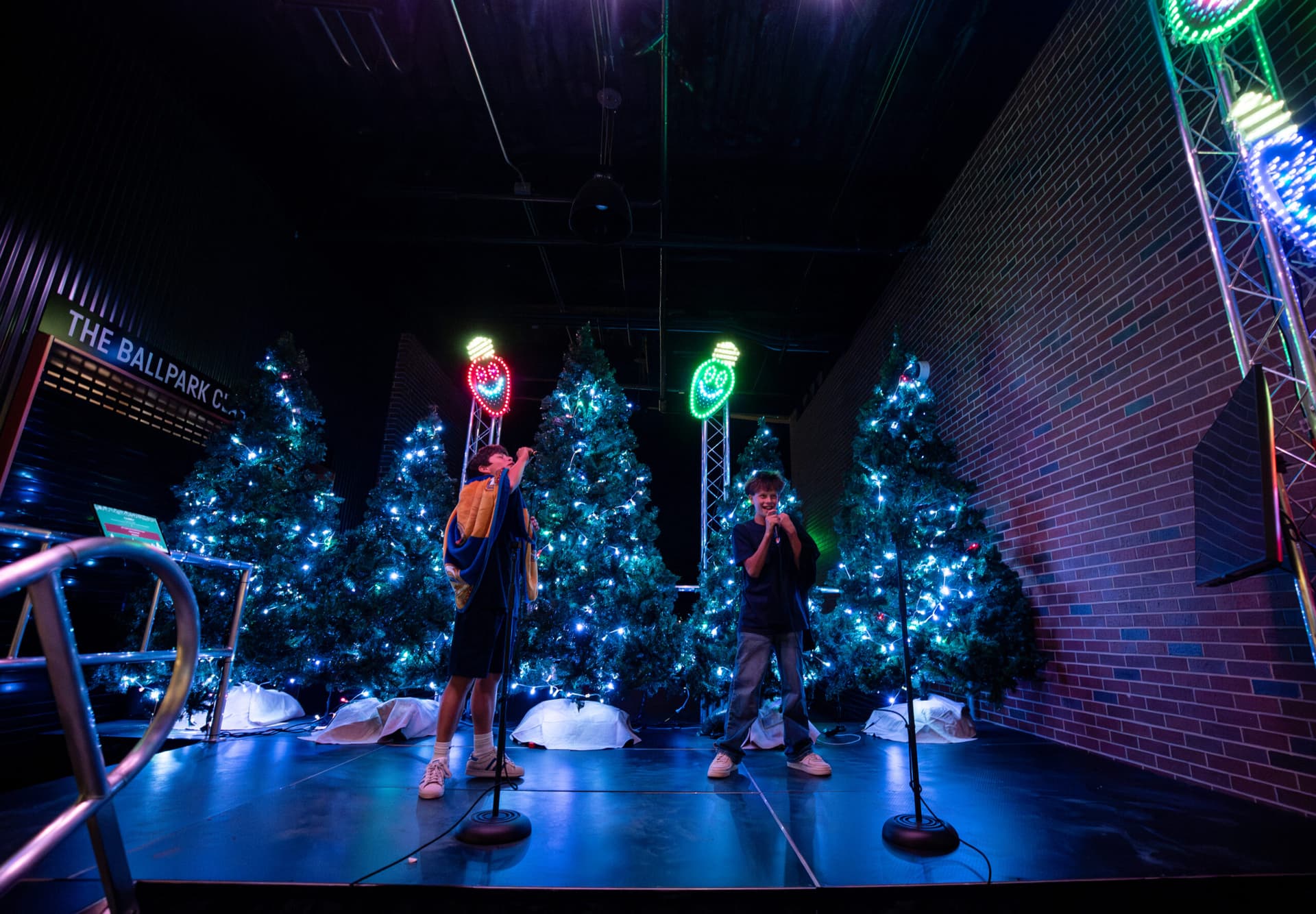 - Interactive games, snowball toss, stomp pads, carol-oke singing